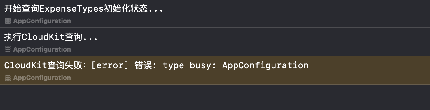 我尝试从 App 中删除 AppConfiguration 的注册,并从 CloudKit Dashboard 中删除该表之后,查询出现了短暂的 type busy 错误: