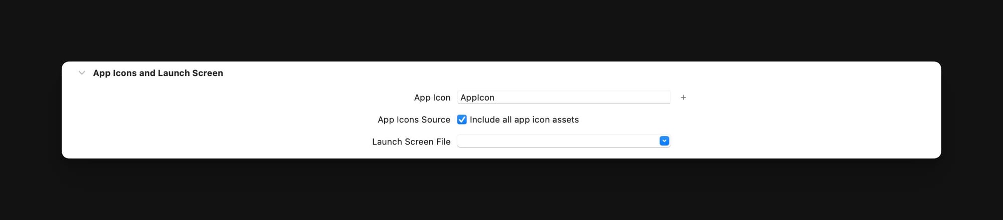 启用 Include all app icon assets 选项